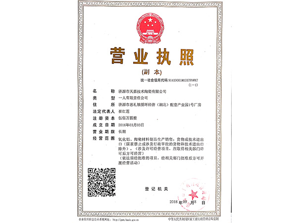 濟(jì)源市天嘉技術(shù)陶瓷有限公司位于河南省濟(jì)源市工業(yè)西區(qū),于一九九七年建立,是一家生產(chǎn)氧化鋁陶瓷研磨盤、氧化鋁陶瓷板、氧化鋁陶瓷管的廠家。本公司現(xiàn)擁有固定資產(chǎn)3500萬元,德國WISTAR10m3大容量梭式窯爐一臺(其煅燒溫度可達(dá)1750℃)和3m3高溫梭式窯爐一臺,德國等靜壓機(jī)三臺以及國產(chǎn)自動干壓機(jī)六臺(規(guī)格40~800噸);磨床若干臺。 本公司可年產(chǎn)氧化鋁陶瓷及復(fù)合陶瓷、增韌陶瓷等1500噸,主要產(chǎn)品有各種規(guī)格、形狀的氧化鋁陶瓷管、陶瓷環(huán),氧化鋁陶瓷棒、陶瓷柱,陶瓷球閥,泥漿泵陶瓷缸套及各種大型氧化鋁異形件,耐磨襯板、耐磨襯磚、耐磨內(nèi)襯片,研磨瓷球、填料球、蓄熱瓷球和環(huán)保瓷球,剛玉莫來石匣缽,氧化鋁陶瓷造粒粉,長余輝發(fā)光材料氧化鋁粉和拋光粉,及用于軍工行業(yè)的陶瓷防彈片等?! ‘a(chǎn)品廣泛應(yīng)用于電子、化工、冶金、鋼鐵、石油、煤炭開采、機(jī)械設(shè)備、紡織等行業(yè),以及航空、航天、汽車、國防、環(huán)保等高科技領(lǐng)域?! iyuan tianjia ceramics industry Co., LTD. locates in western industrial districts of Jiyuan City,Henan Province, and was founded in 1997. After more than 10 years of development, it has had fixed assets of 35,000,000 RMB, and a WISTAR10m3 high-capacity shuttle kiln made in Germany(its calcination temperature can reach 1750℃), a 3m3 high-temperature shuttle kiln, three German isostatic pressing machines, six home-made automatic dry press machines (40 ~ 500 tons as specification), and several Grinding machines. The company has an annual output of 1500t of alumina ceramics, composite ceramics and toughened ceramics. Its main products are all kinds of alumina ceramic pipes and rings, alumina ceramic rods, ceramic columns, ceramic balls, ceramic ball valves, mud pump ceramic liners and various large aluminum oxide irregular parts, wear-resisting plates, wear-resisting lining bricks, wear-resisting linings, ceramic grinding balls, padding balls, ceramic heat-storing balls and environmental protection ceramic balls, corundum-mullite saggers, alumina ceramic granulation powder, calcined alumina powder, luminous powder, polishing powder, and ceramic bulletproof slices used for military industry, and so on. In which six products are being applied for the National Patents. Our products are widely applied in industries of electronic, chemical, steel&iron, metallurgy, petroleum, coal mining, machinery equipment, textile,etc., and some hi-tech fields such as aviation, aerospace, automobile, national defense, and environmental protection,etc.